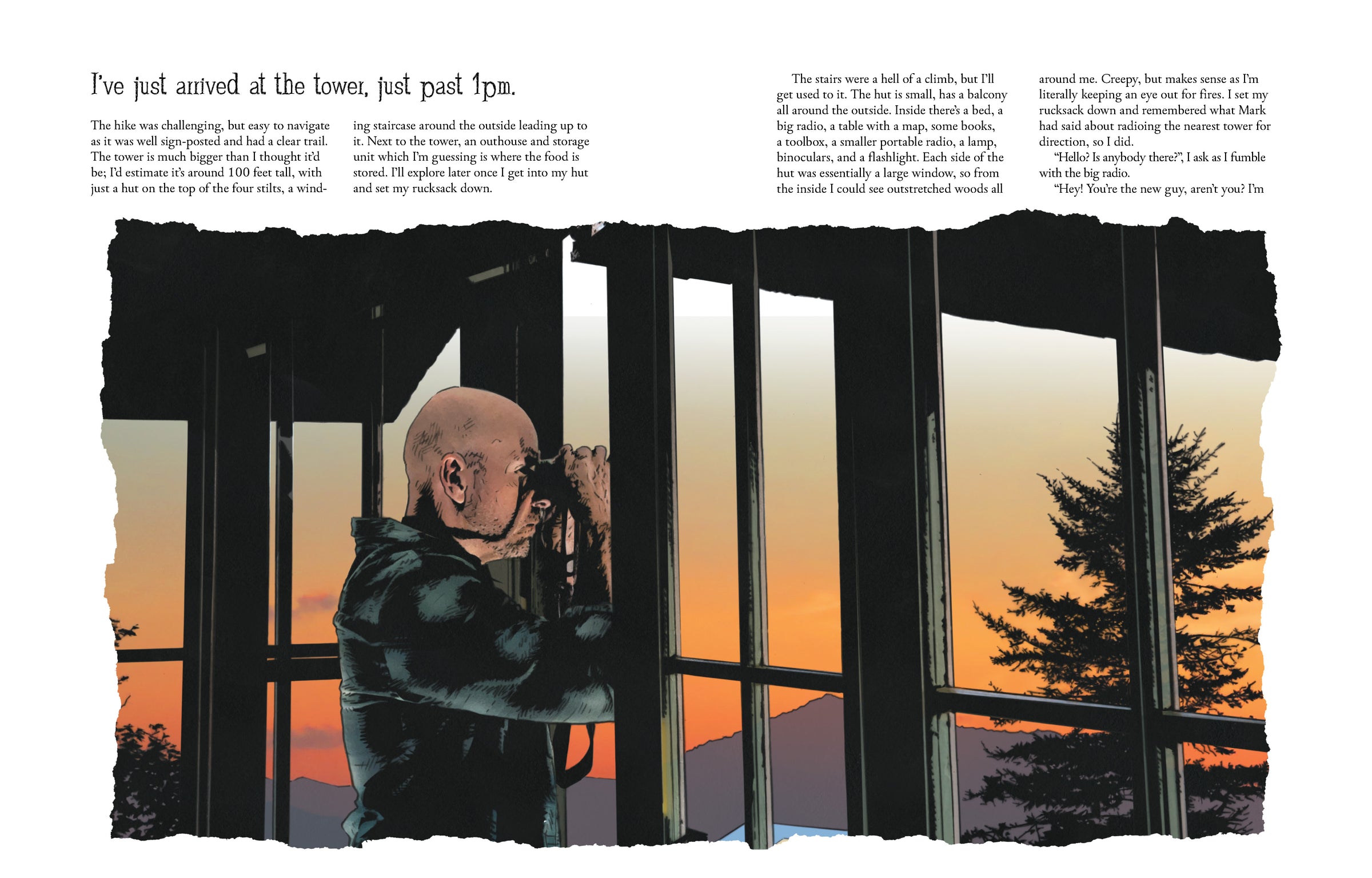 When Oscar, recuperating from a divorce, takes a job as a fire lookout in a remote forest outpost, he unearths a paper inscribed with a strange set of rules that promise to keep him safe during his watch. This thriller features gorgeous full-color painted illustrations by acclaimed cover artist Tim Bradstreet (The Punisher, Hellblazer) and marks the debut of the FUTURE OF FEAR collaboration between AWA and acclaimed producer Roy Lee’s Vertigo Entertainment (Barbarian, It, Late Night with the Devil).