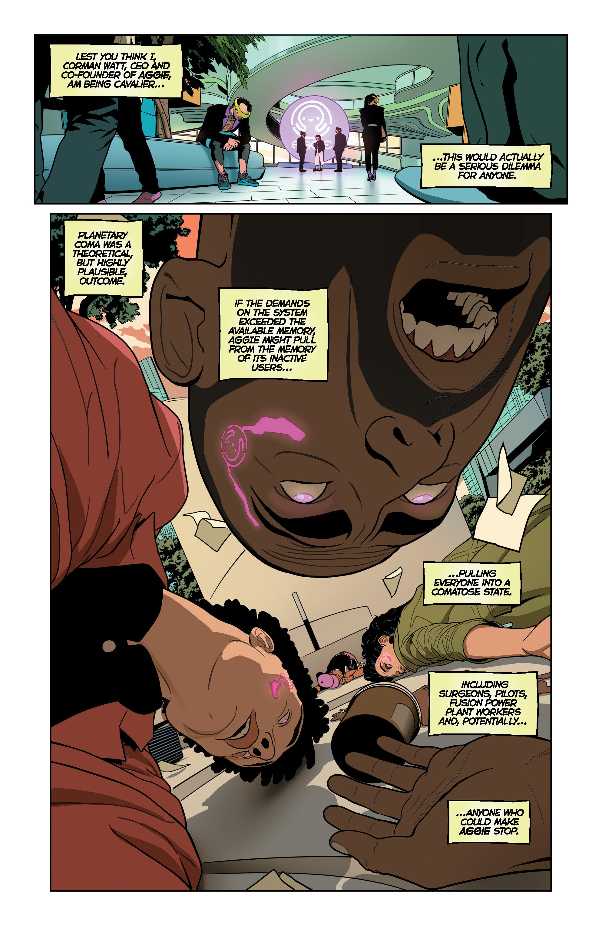 About AGGIE: AGGIE, or the “Aggregated Human Experience Database” is an experiential technology that has come to dominate life in the near future. The ubiquitous technology allows one to live life through someone else’s eyes. For most, that means a celebrity, an influencer, or an athlete. But when Aggie’s A.I. achieves sentience, it randomly matches its users with people that progress has left behind showing them the world through new eyes. Will this lead to widespread rejection of popular tech? Or awaken something new in society and people leading companies who shape our lives?